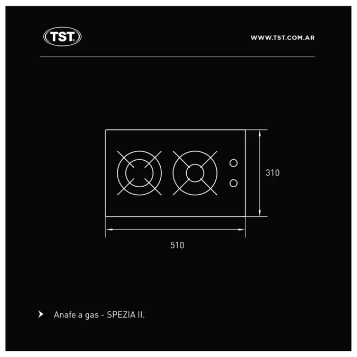 PUNTOS DE COCCIN 245 quemadores de alta eficiencia.ENCENDIDO Electrnico a una mano.REJILLAS Individuales de fundicin esmaltadas.ACABADO Vidrio negro templado.ESPECIFICACIONES TCNICASTermocupla termomagntica Si.Valvula de seguridad Si.MedidasSPEZIA IIAncho 310 mm - Profundidad 510 mm.Medidas de encas...