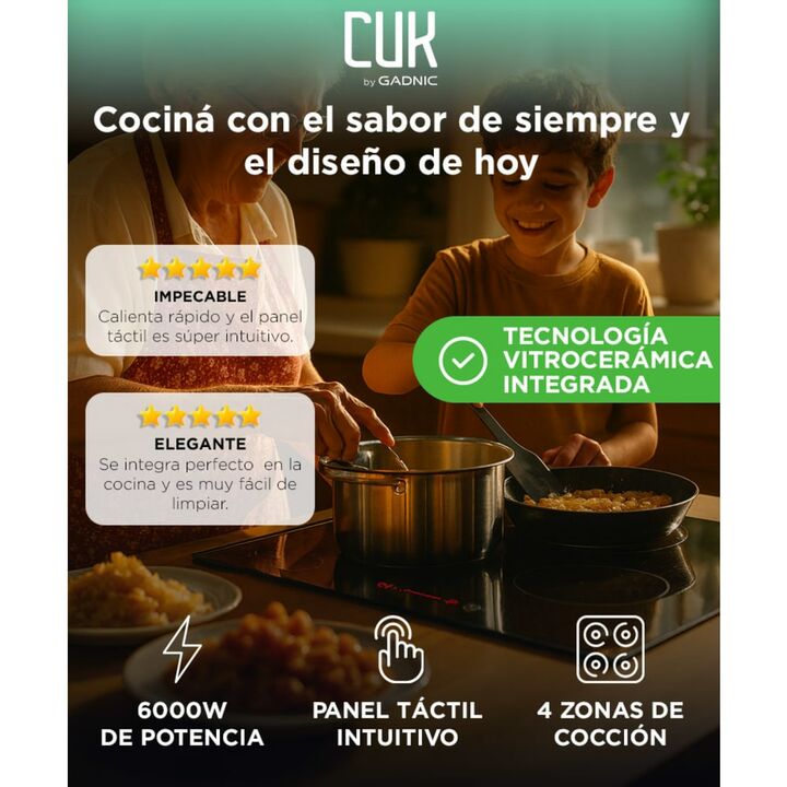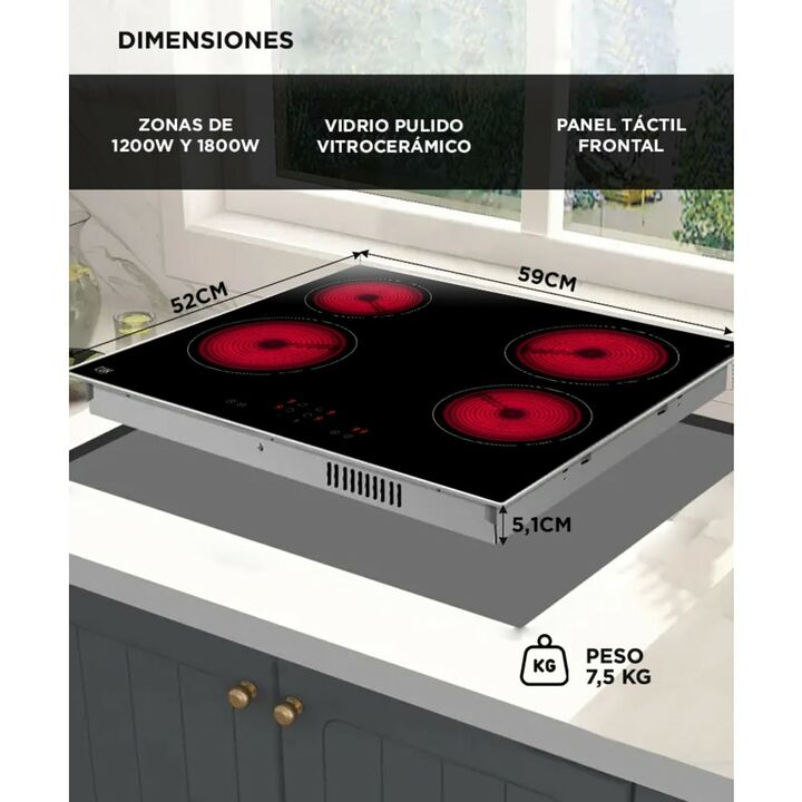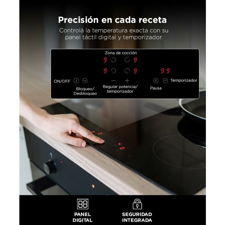Cociná con tecnología y tradición Redescubrí las recetas caseras con este anafe empotrable, que combina potencia y diseño minimalista. Potencia total de 6000W Equipado con 2 zonas de 1800W y 2 de 1200W, permite preparar varias comidas a la vez con calor uniforme. Panel táctil con temporizador digita...