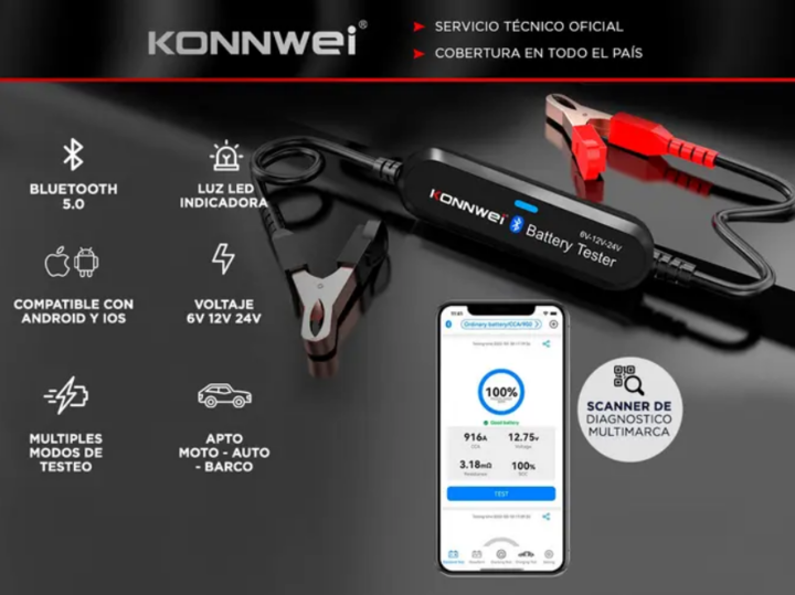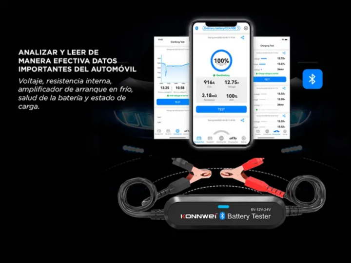 El probador de batería de automóvil KONNWEI BK200 6V 12V 24V puede analizar y leer de manera efectiva datos importantes del automóvil, como voltaje, resistencia interna, amplificador de arranque en frío, salud de la batería y estado de carga. Pruebas precisas: Puede probar con precisión la resistenc...