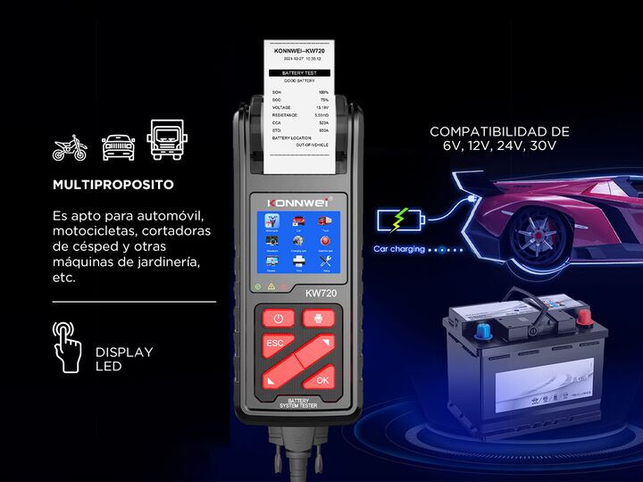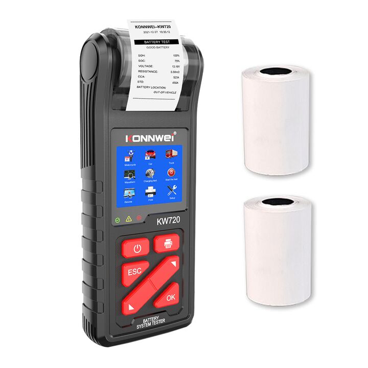 El probador de batería KW720 verifica el estado operativo general de la batería de 6V 12V 24V 30V. Las pruebas de batería analiza el estado saludable de la batería para calcular la capacidad real de arranque en frío de la batería y el grado de envejecimiento. La prueba de arranque lo ayuda a probar ...