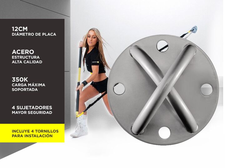 Anclaje de pared que te permitirá realizar cientos de ejercicios funcionales para mejorar tu fuerza, estabilidad y resistencia, entre otros. Con sólo utilizar 30 minutos diarios destinados a esta excelente novedad del mercado, llevarás una vida sana y llena de beneficios. Especificaciones Placa de 1...