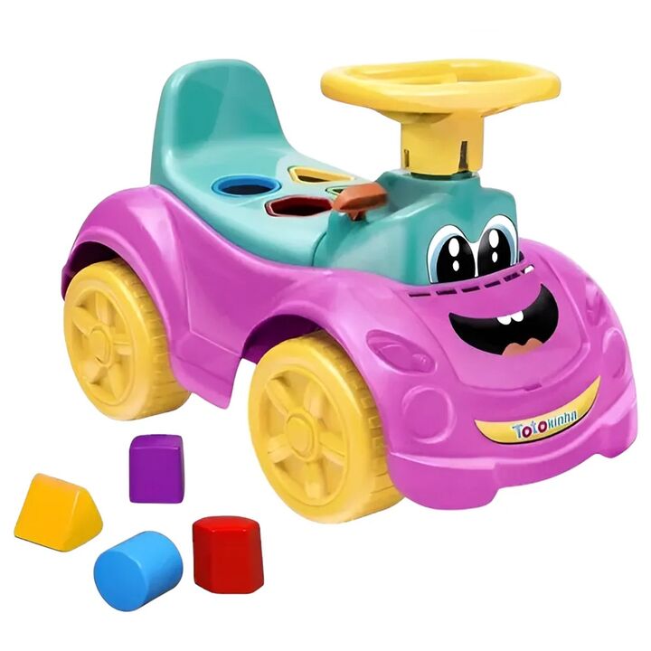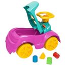 Descripción -Altura ideal para posicionar al niño -Bocina para presionar -Llave para girar -El maletero se abre y se cierra -Encaja piezas geométricas con un marco en el banco