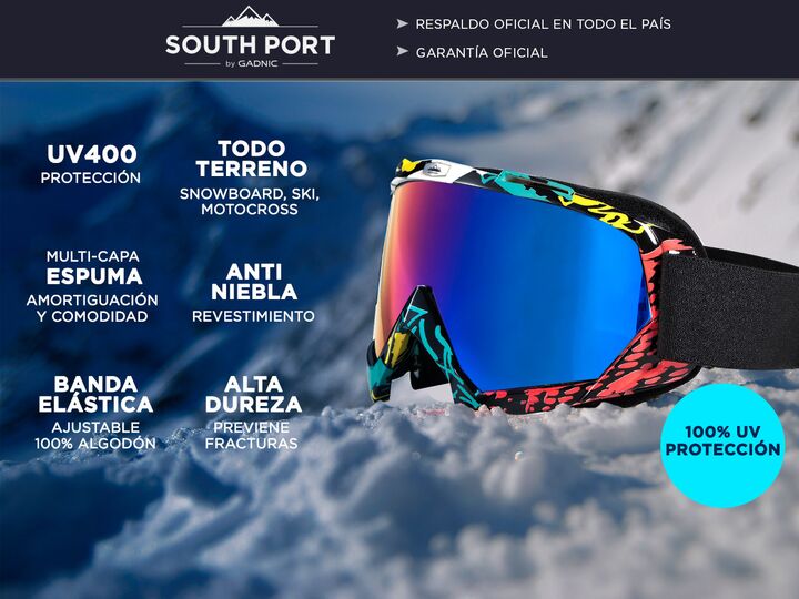 100% de protección contra los rayos UV. Esta antiparras es líder en calidad de lentes, de prestaciones y más que nada su funcionalidad. Posee lentes con protección 400% que te darán una seguridad asegurada ante los rayos del sol. Ademas cuenta con tecnología anti niebla ideal para disfrutar de tu ac...