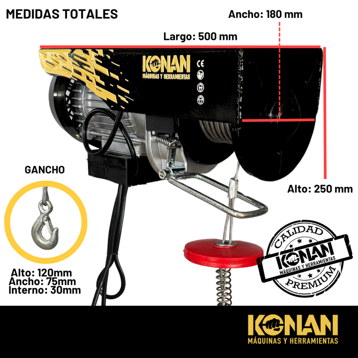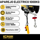 Aparejo Eléctrico KONAN 1000kg / 12m - Levanta Cargas con Facilidad (Ideal para Talleres, Construccion).
