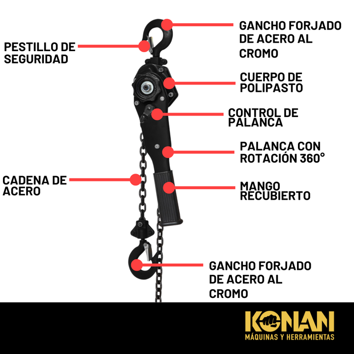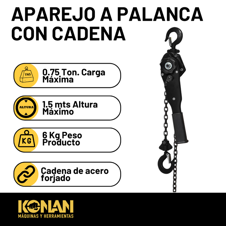 Aparejo Konan a Palanca con Cadena 0.75 Tns