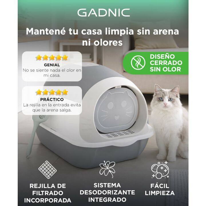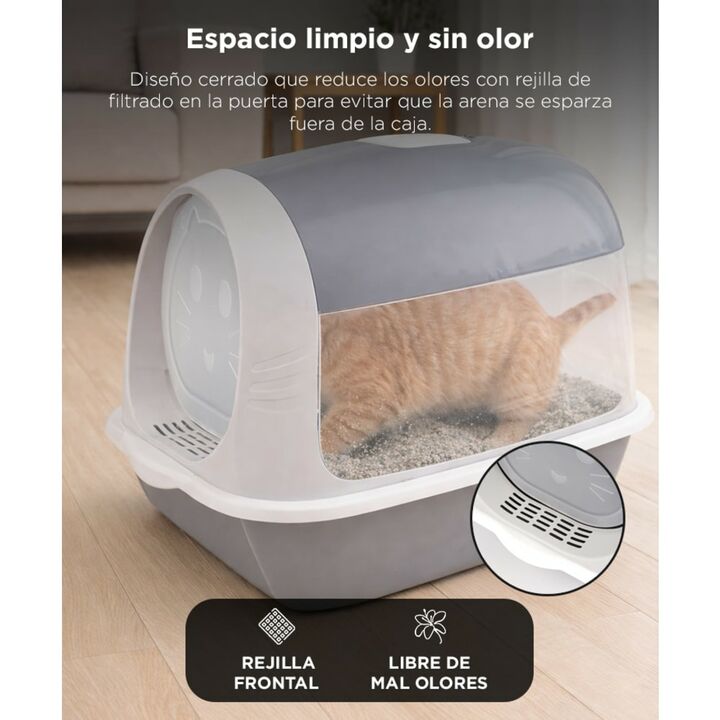 Control de olor para un hogar más limpio: El diseño cerrado del arenero para gatos PEPT01 ayuda a contener los olores, mejorando la higiene diaria del ambiente y la convivencia en el hogar. Sistema anti-desparramo de arena: La entrada frontal y la base amplia reducen la salida de arena al exterior, ...
