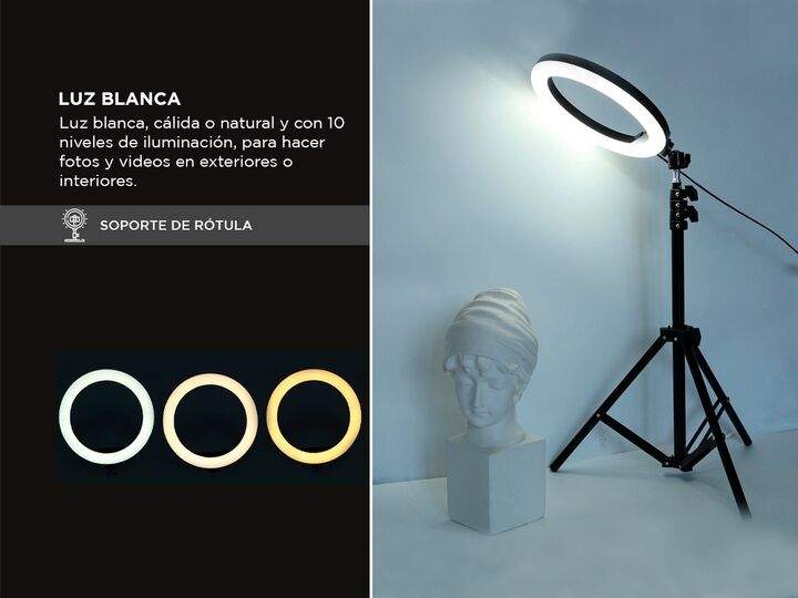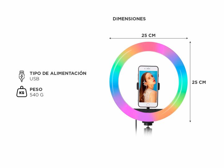 Descubre el Aro de Luz Multicolor RGB, la elección perfecta para aquellos que buscan llevar la iluminación creativa a un nivel superior. Equipado con un soporte ajustable para teléfono, este aro de luz te permite utilizar tu dispositivo de manera eficaz, brindándote la flexibilidad de cambiar de cám...