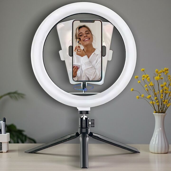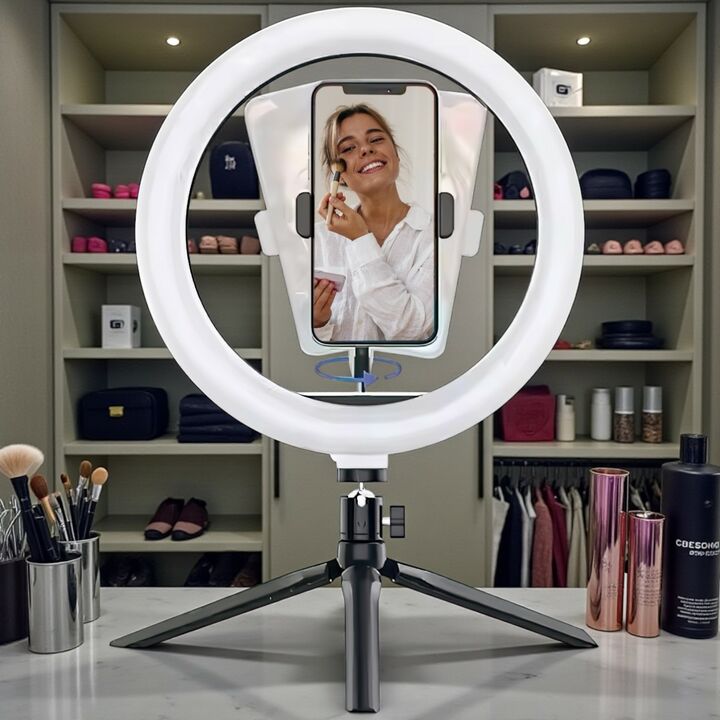El Aro de Luz LED con Trípode KLASSE está diseñado para que cada foto, video o videollamada se vea mejor que nunca. Sus 3 tonos de luz (fría, cálida y neutra) te permiten crear la ambientación perfecta según el momento, mientras que el brillo regulable en ...