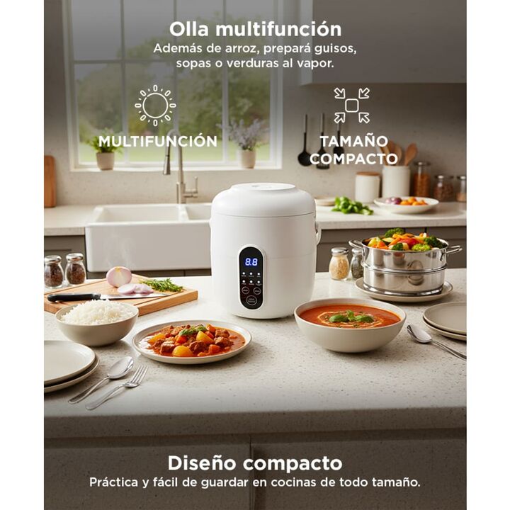 La Arrocera Eléctrica Riceron Gadnic es mucho más que una simple arrocera: es una olla multifunción que te permite preparar una variedad de platos deliciosos de manera rápida y sencilla. Con capacidad para 1.5 litros y funciones de cocción al vapor, esta arrocera es perfecta para cocinar arroz, cere...