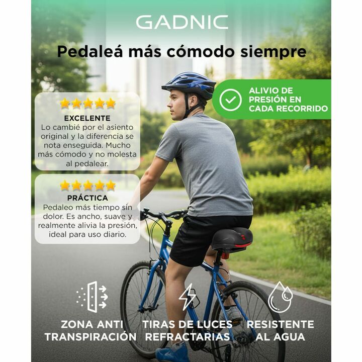 ¡Llego el nuevo asiento para bicicletas Gadnic! Sillín duradero y cómodo: el cojín del asiento de bicicleta está relleno de espuma . La superficie es lisa y cómoda y tiene una excelente elasticidad. Suave y duradero, protege bien tus caderas. Diseño ergonómico: el sillín de bicicleta tiene un hermos...