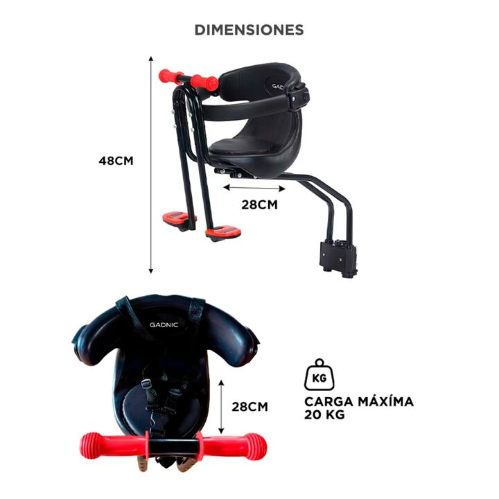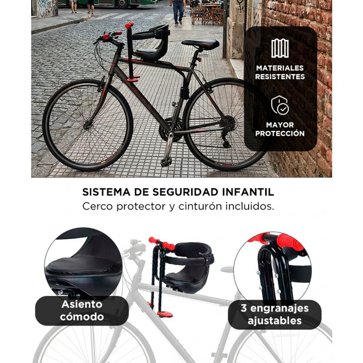 Seguridad pensada para el traslado infantil La sillita infantil para bicicleta Gadnic incorpora cinturón de seguridad y cerco protector, brindando mayor contención durante paseos urbanos o recreativos. Estructura resistente para uso confiable Fabricada en PE combinado con acero de alto carbono, ofre...