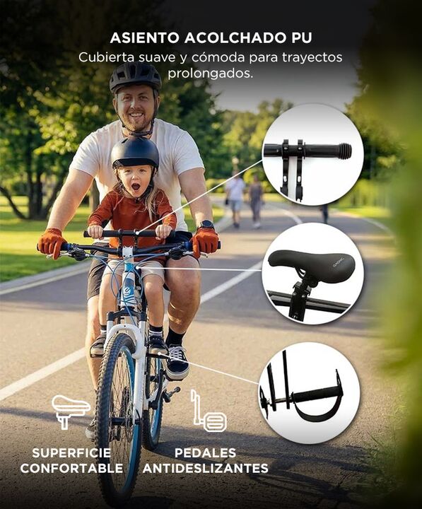 Seguridad reforzada para paseos tranquilos: El Asiento Infantil de Bicicleta GADNIC soporta hasta 25 kg y cuenta con estructura metálica resistente. Ofrece estabilidad firme durante el recorrido. Manillar frontal para mayor control: Incorpora manillar con agarre TPE que permite al niño sujetarse cóm...