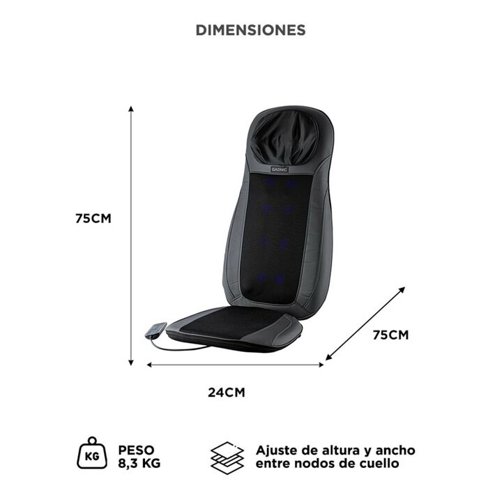 El asiento masajeador shiatsu Gadnic es ideal para ayudarte a relajar hasta los músculos más cansados. Puede utilizarse en cualquier sillón, silla o cama, ya que es adaptable a cualquier asiento Obtené una experiencia única, agradable y relajante gracias al confort de este asiento masajeador que lle...