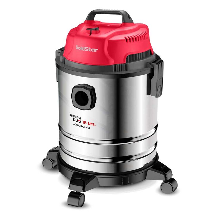 Aspiradora GLDA-18 polvo agua. Motor de alta potencia de 1400 W. Capacidad 18 litros. Apto para polvo y agua. Incluye función de soplado. Tambor de acero inoxidable. Trabas de seguridad. 4 ruedas 360° y manija superior. Cepillo para piso con accesorio para polvo y agua. Manguera reforzada de 1.5 m. ...