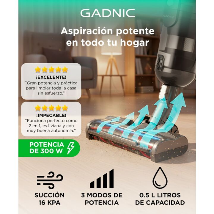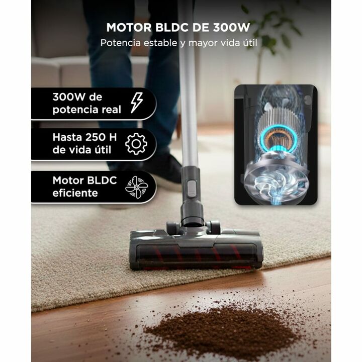 Motor BLDC de alto rendimiento Su motor brushless ofrece mayor eficiencia, menos desgaste y una succión estable de 16 kPa para limpieza profunda en todo tipo de superficies. Autonomía real según tu necesidad Obtené hasta 37 min en modo bajo, 20 min en modo medio y 10 min en potencia máxima. Ideal pa...