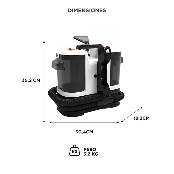 Limpieza profunda desde la primera pasada El sistema de rociado y succión de la aspiradora GADNIC elimina manchas difíciles en tapizados, alfombras y sillones, ofreciendo resultados visibles desde el primer uso. Potencia profesional en tus manos Con un motor de 700W y una presión de vacío de ?15Kpa,...