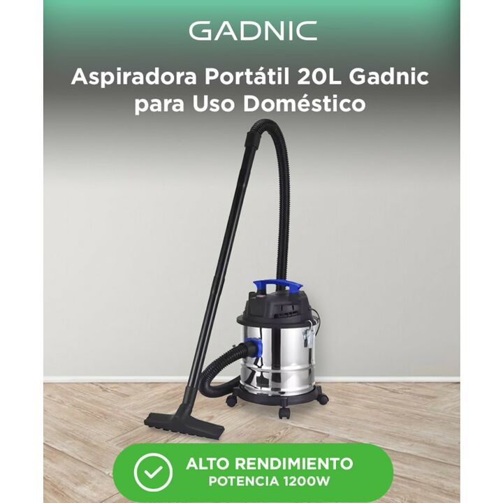 Potencia y capacidad para todo tipo de limpieza Con una capacidad de 20 litros y sistema de doble función, esta aspiradora portátil Gadnic te permite limpiar polvo y líquidos con máxima eficiencia. Ideal para uso doméstico intensivo o tareas de limpieza más exigentes. Succión poderosa y función de s...