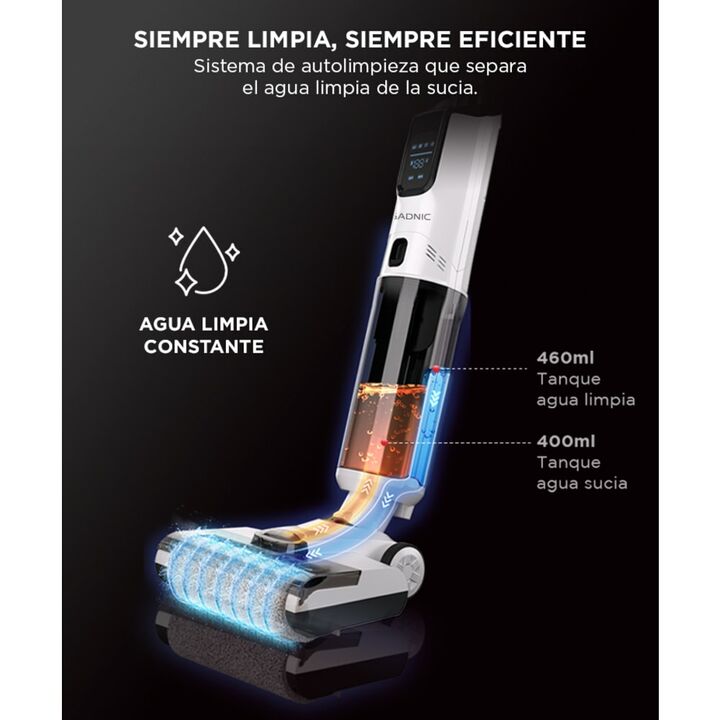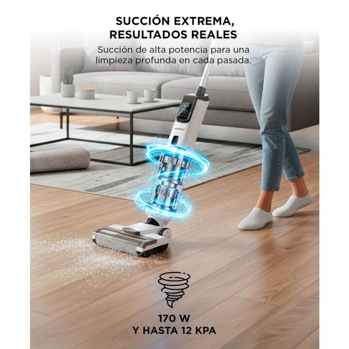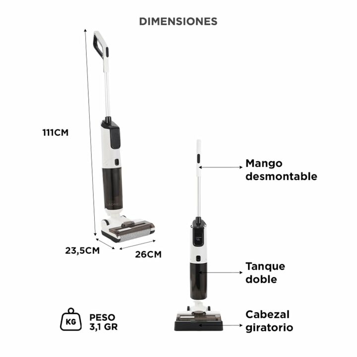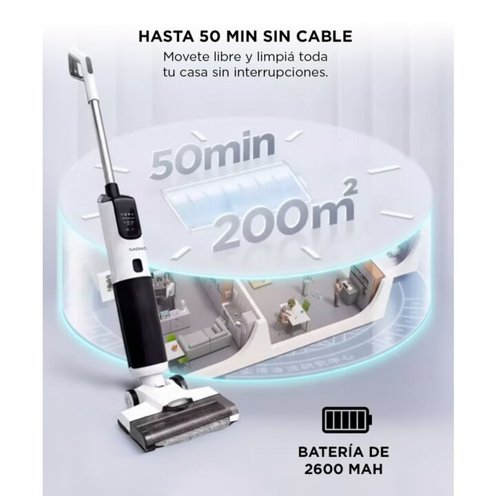 Limpieza eficiente y sin esfuerzo: Aspirá y fregá al mismo tiempo con un solo equipo. Ideal para mantener pisos de madera, cerámica o alfombras finas impecables todos los días. Total libertad de movimiento: Su batería de litio de 25.9V ofrece hasta 50 minutos de uso continuo sin cables, perfecta par...