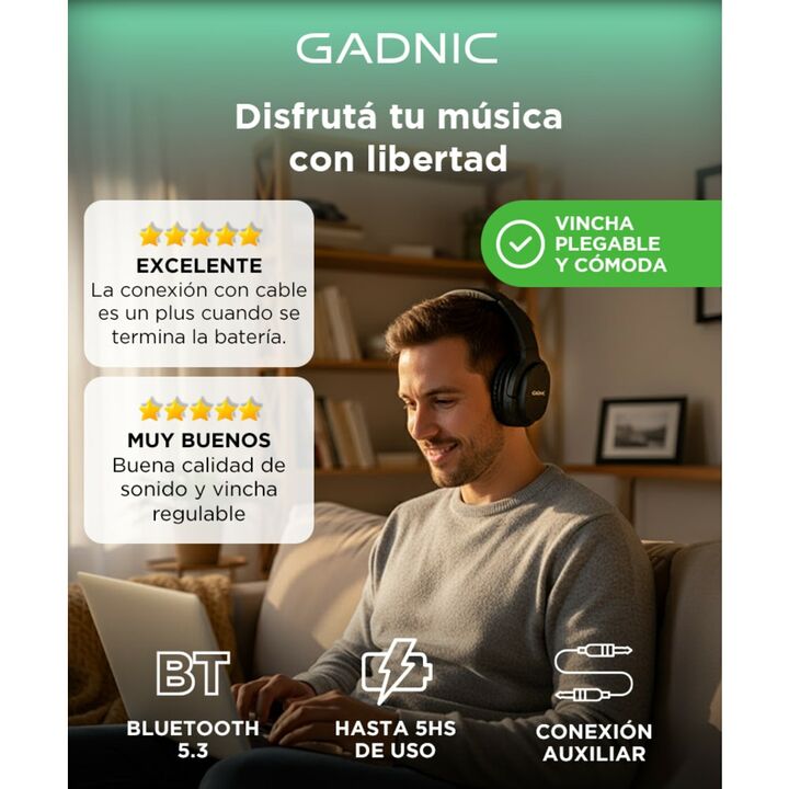 ¡Descubre una nueva dimensión de libertad con los auriculares inalámbricos vincha Gadnic Manos Libres! Imagina la sensación de poder moverte sin restricciones mientras tu música favorita te acompaña en cada paso. Conectividad Bluetooth de última generación que te permite dejar atrás los cables y sum...