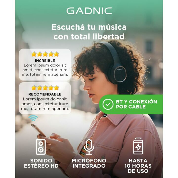 Sumergíte en una experiencia auditiva excepcional con nuestros auriculares tipo vincha de última generación. Gracias a la avanzada tecnología Bluetooth 5.3, disfrutarás de una conexión inalámbrica estable y eficiente con tus dispositivos, con un alcance de hasta 10 metros. Olvídate de los molestos c...