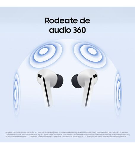 Conectividad y Sensores Versión de Bluetooth: v5.4 Perfiles de Bluetooth: A2DP, AVRCP, HFP Sensores: Sensor Hall, Sensor de Presión, Sensor de Proximidad, Sensor Táctil Conmutación Automática (Auto Switch): Sí Asistente de Voz: Despertar por voz de Bixby (Bixby Voice Wake-up) Servicios Adicionales: ...