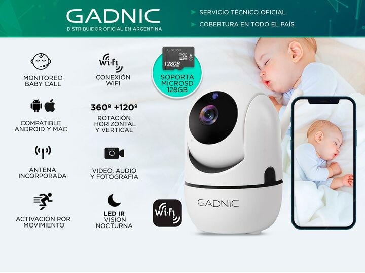 ¡Disfrutá la tranquilidad de saber que tu bebe está seguro las 24hs del día con Baby Call Cámara De Seguridad Gadnic SX9! Cuenta con conexión wifi y con una instalación muy fácil: solo necesitás descargar la app, conectarte al wifi y ¡listo! Posee 6 led IR de alto poder que te permiten ver hasta 15 ...