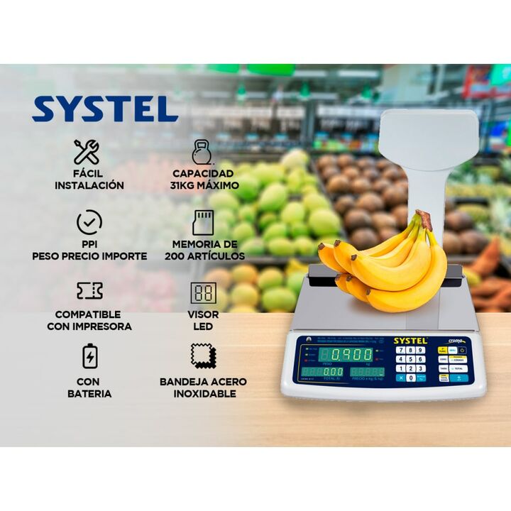 Este instrumento brinda la precisión, calidad y tecnología que necesitás en tu negocio para pesar con exactitud. Además, cuenta con una gran variedad de funciones que permiten trabajar con comodidad. Systel es una empresa argentina en continuo desarrollo que se dedica al diseño, fabricación y comerc...