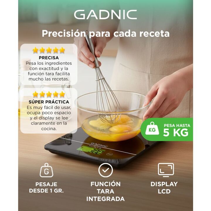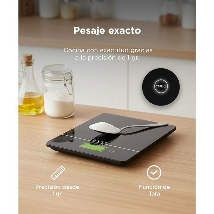 Pesaje preciso desde 1 gramo para recetas exactas: La balanza de cocina GADNIC BALANZA6 permite medir ingredientes con alta precisión, incluso en cantidades pequeñas. Resulta ideal para repostería, café y preparaciones que requieren control exacto de gramos. Su sistema de sensores ofrece resultados ...