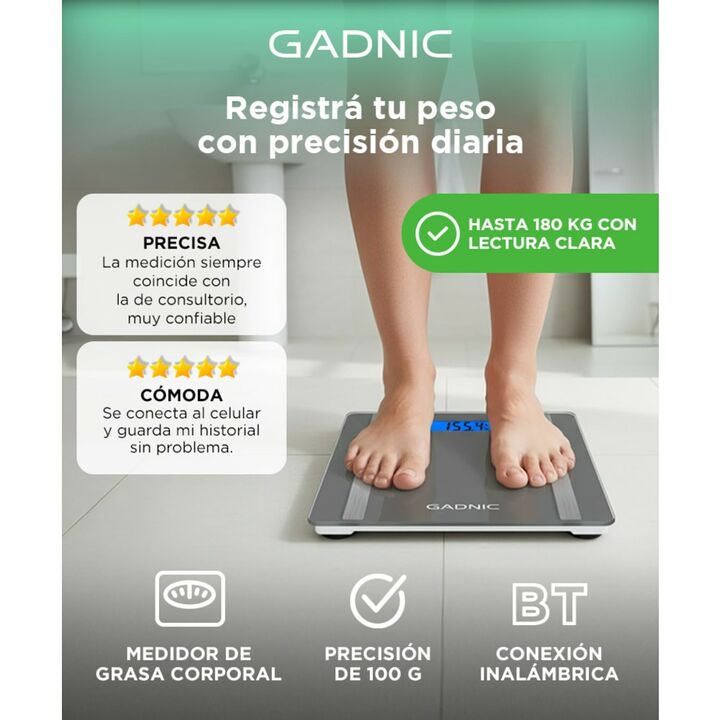 Si estás intentando mantener un peso equilibrado, la balanza Gadnic G07 es confiable y exacta para el pesaje corporal. Además, proporciona las métricas que necesitas para llevar el control de una vida sana y promover un efectivo cuidado de tu salud. Eficiente y práctica Gracias a su apagado automáti...