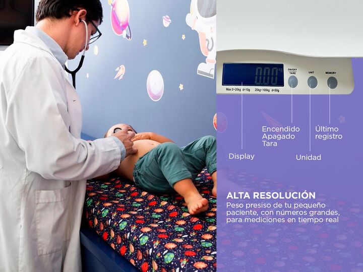 ¡Descubrí la balanza pediátrica perfecta para un crecimiento saludable! Su pantalla LCD de alta resolución garantiza una visualización clara y precisa del peso de tu pequeño paciente, con números grandes y fáciles de leer para mediciones en tiempo real. Además de ser perfecta para bebés y niños pequ...