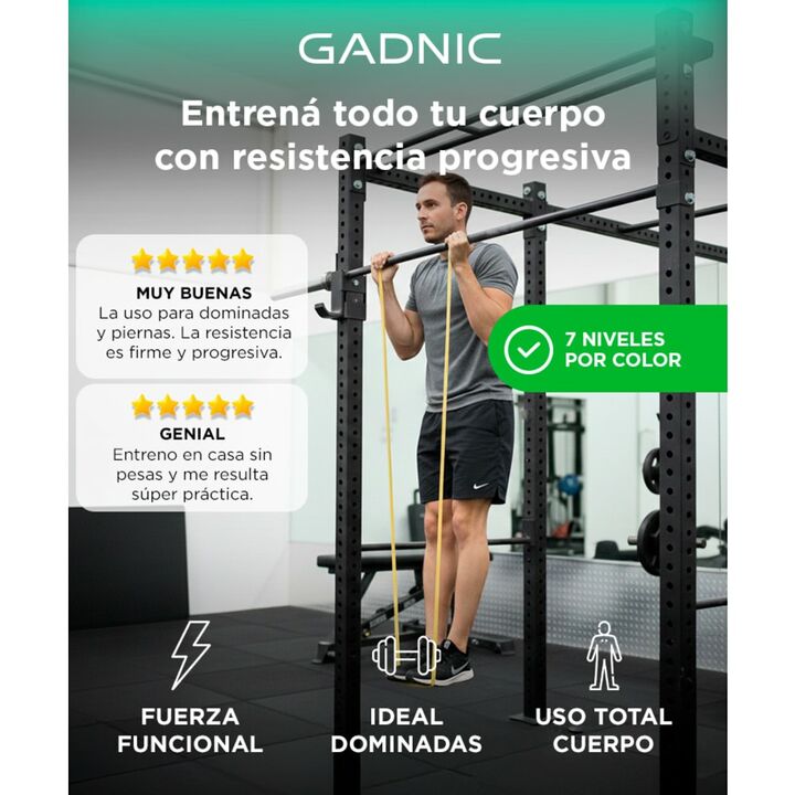 ¡Nuevo set de bandas de entrenamiento Gadnic! Estos juegos de banda de potencia están hechos de material de goma de alta calidad, cómodo y ecológico. Incluye 7 niveles para que elijas. Es súper versátil, se puede usar en tobillos, rodillas, piernas, muslos y muñecas. También es útil para bajar de pe...
