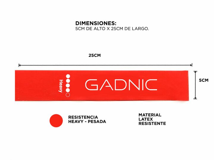 Esta banda de resistencia Gadnic está diseñada para estirar, tonificar y rehabilitar los músculos, siendo ideal para rutinas de rehabilitación. Fabricada con látex, ofrece una resistencia pesada, lo que la hace efectiva para quienes buscan un entrenamiento más desafiante. Sus dimensiones son de 5 cm...