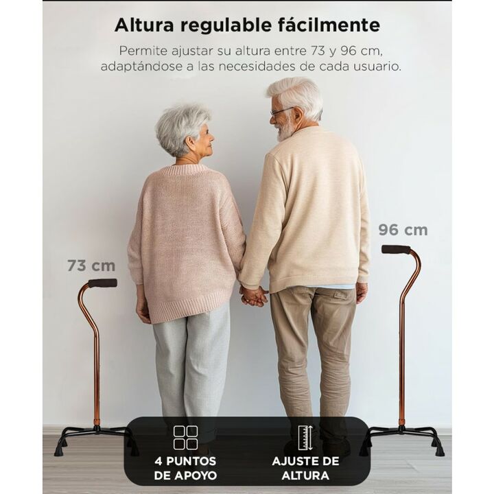 Estructura de aluminio liviana: Fabricado en aluminio resistente que reduce el peso total y permite un uso diario cómodo, sin generar fatiga en brazo ni muñeca. Altura regulable para mejor adaptación: Sistema de ajuste simple que permite regular la altura del bastón para lograr una postura más segur...