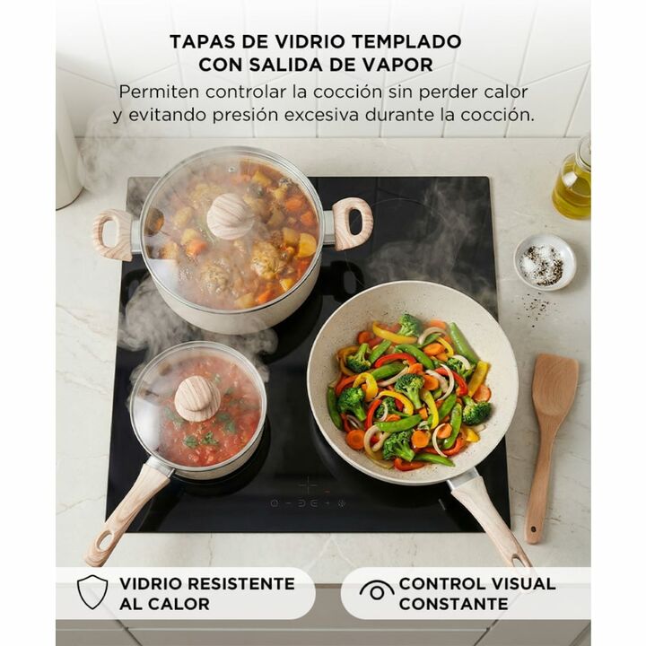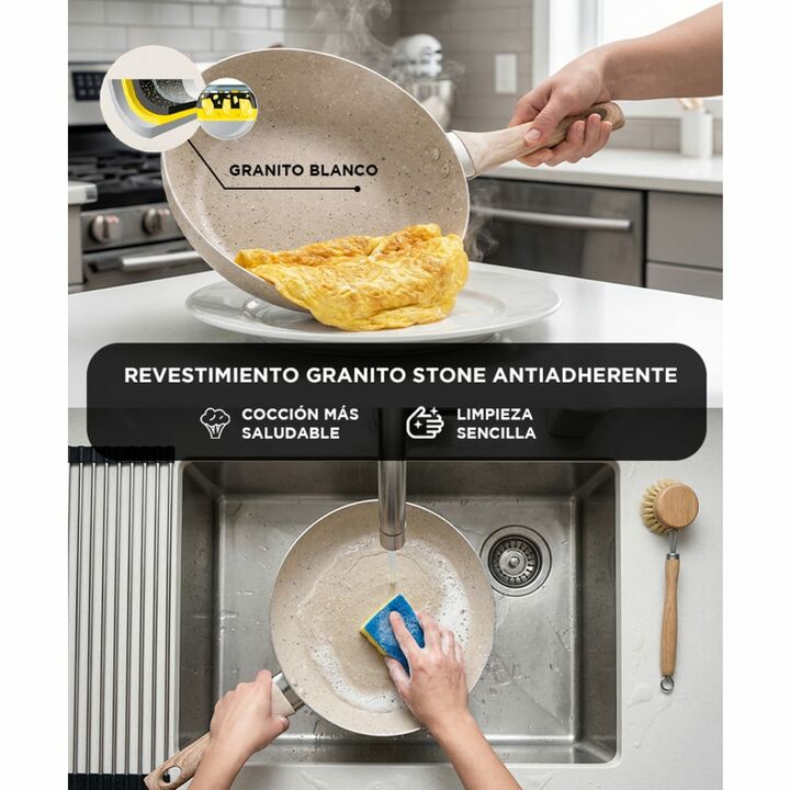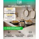 Cocción antiadherente con revestimiento granito stone: El set de ollas CUK by Gadnic cuenta con revestimiento granito stone que evita que los alimentos se peguen. Permite cocinar con menos aceite y facilita la limpieza diaria sin esfuerzo. Compatibilidad total con todo tipo de cocinas: Diseñado para...