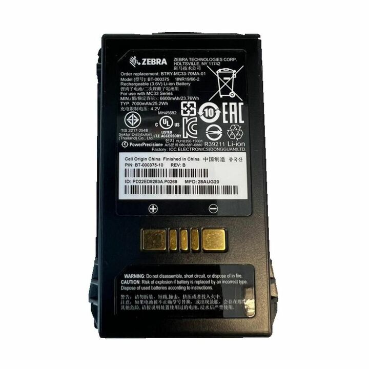Bateria Zebra MC33 7000 mAh alta capacidad y duracion Bateria Zebra MC33 7000 mAh alta capacidad y duracion La avanzada tecnología de esta batería proporciona un mayor nivel de inteligencia para ofrecer el máximo rendimiento. Zebra PowerPrecision+ - Batería para PDA (capacidad mejorada) - Ion de lit...