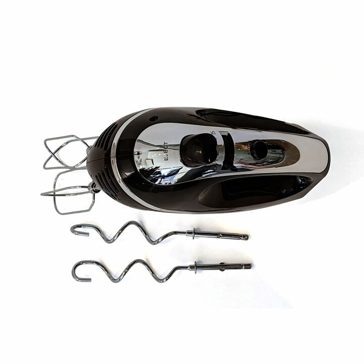 Batidora de mano FY-602 Potencia 400 Watts. Accesorio batidor y amasador. 5 velocidades ms funcin turbo. Color negro y acero inoxidable. Con 2 batidores metlicos as podes preparar y alcanzar los puntos necesarios para cada receta.