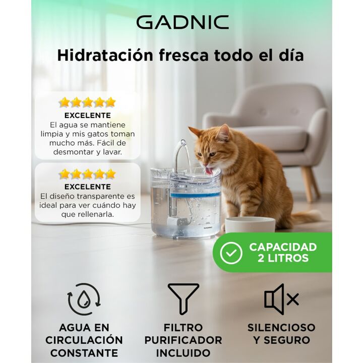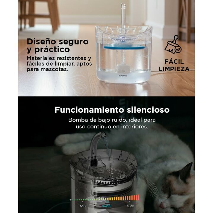 ¡Nuevo bebedero para gatos Gadnic! Diseño totalmente transparente. Alimentado por cable USB. Segura, higiénica y práctica, apta para lavavajillas en el estante superior. Alta calidad. La fuente para mascotas está hecha de material de policarbonato apto para uso alimentario, ecológico, no tóxico, ino...
