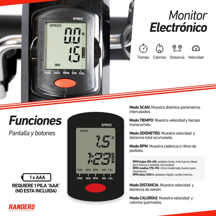 Resistencia: A cinta. Computadora: Tiempo, Calorías, RPM, Distancia, Velocidad, Odómetro. Medidas Armado: 41x38,5x30 cm. Peso del producto: 3,2 Kg.