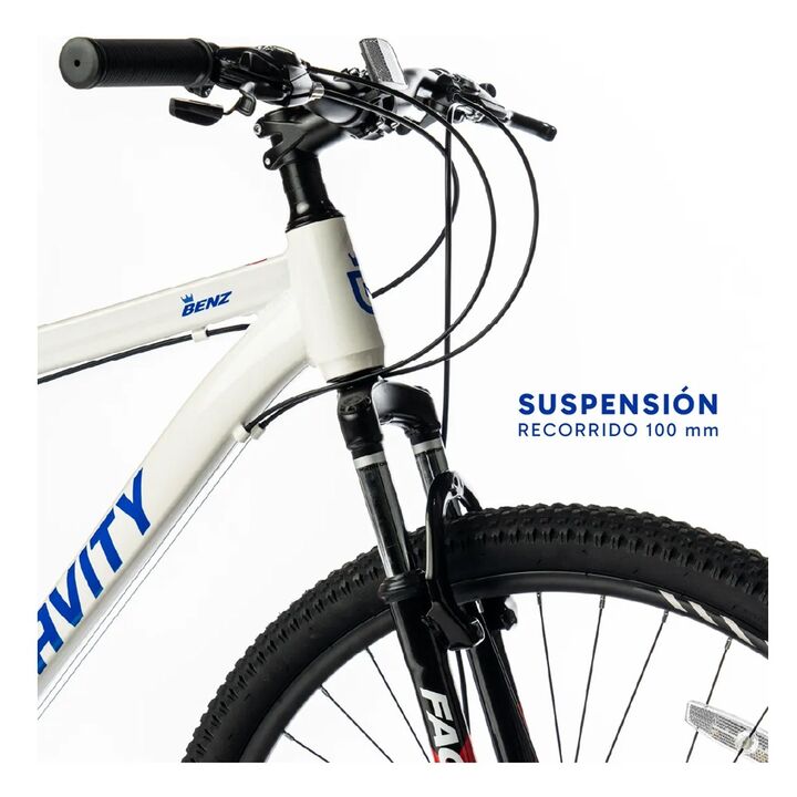 Descripción del producto: BICICLETA MTB GRAVITY BENZ ALUMINIO ROD 29 M BLANCO AZUL Descubrí la Bicicleta GRAVITY BENZ MTB R29, tu compañera ideal para aventuras al aire libre y recorridos urbanos. Diseñada para brindar un equilibrio perfecto entre rendimiento, comodidad y seguridad, esta bicicleta d...