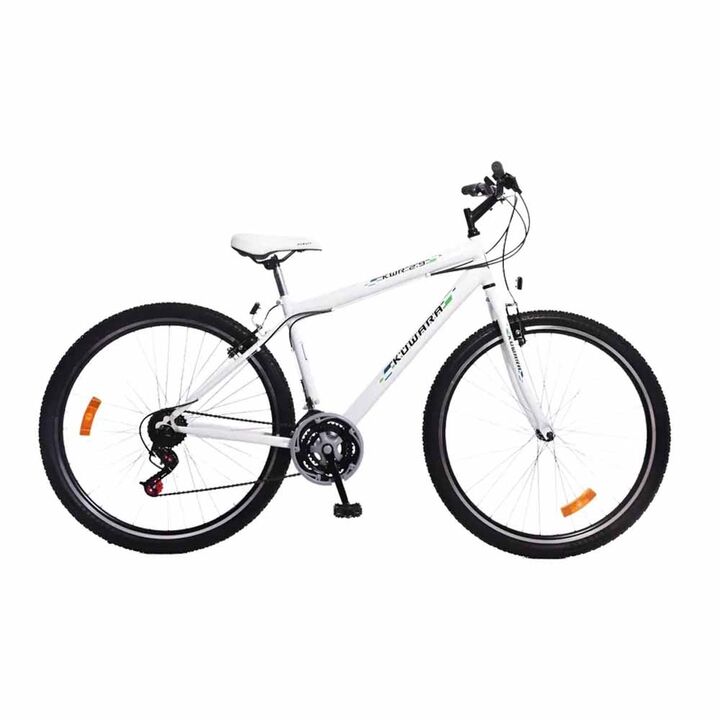 Marca: Kuwara Modelo: B83875 Color: Blanco Tipo: Mountain Bike (MTB) Rodado: 29 Velocidades: 21 (transmisión Sun Run) Cuadro: Acero Horquilla: Acero Frenos: V-Brake Asiento: MTB Pro Llantas: XR4 de doble pared Piñón: 7 coronas Medidas del cuadro: 112 cm de largo x 47 cm de alto Peso: No especificado...