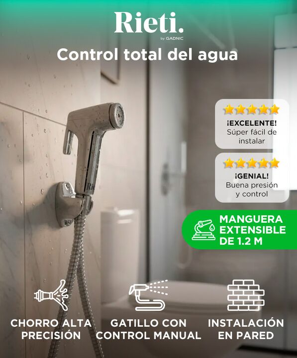 Control preciso del agua para mayor higiene: El bidet manguera extensible permite regular el flujo de agua desde el gatillo, logrando una limpieza efectiva y cómoda sin salpicaduras ni desperdicio. Construcción metálica resistente para uso diario: Fabricado con cuerpo cromado y manguera reforzada, o...