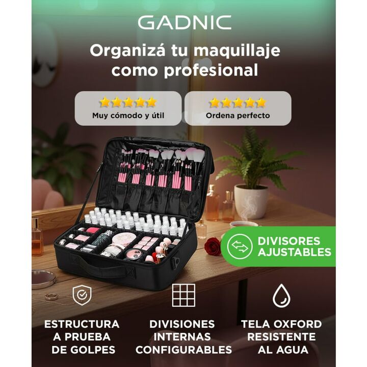 ¡Nuevo Maletín de Maquillaje y más Gadnic! Hecho de tela oxford de alta calidad resistente al agua y resistente al desgaste. Cierre liso de 2 vías. Compartimentos a prueba de golpes que te permiten transportar los productos de belleza de una manera organizada y segura. Gran espacio de almacenamiento...