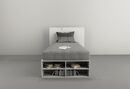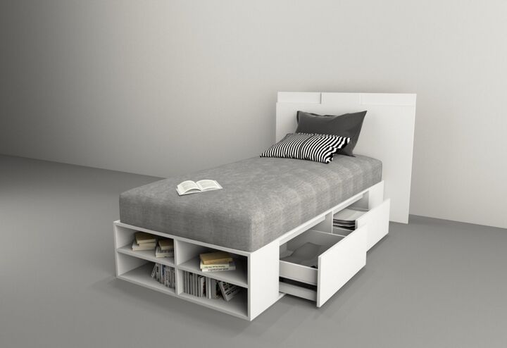 Box para colchón de hasta 0,90m. Linea MINIMAL Juvenil contiene 2 cajones de cada lateral para aprovechar el espacio de guardado y repisas en piecera. Respaldar ART 6429 se vende por separado Medidas: Largo 1,95 m - Alto 0,33 m - Profundidad: 0,92 m 4 Cajones con interiores revestidos Corredera Meta...
