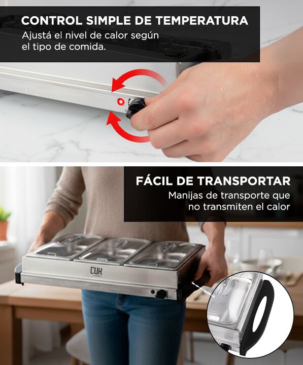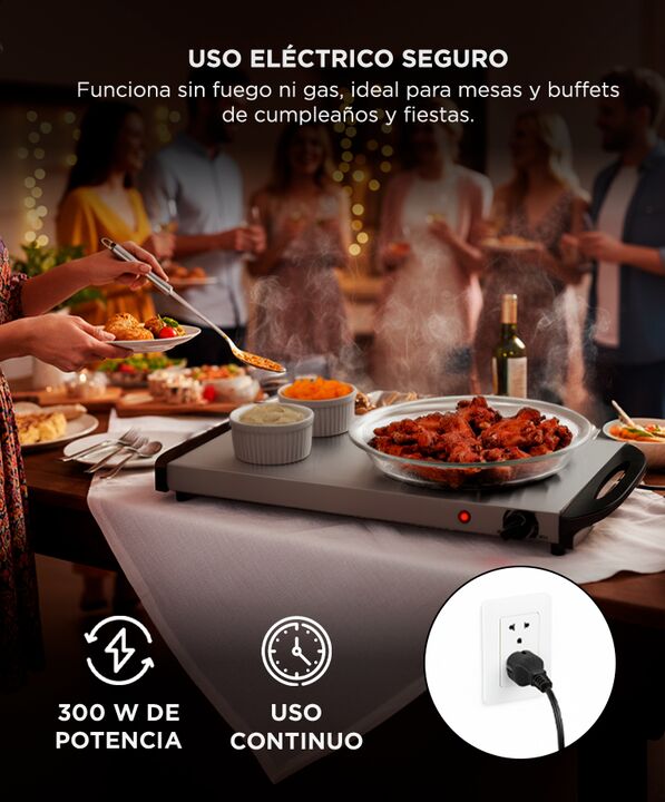 Mantené la comida caliente y lista para servir: La bufetera eléctrica de 3 bandejas RECBUF02 está diseñada para mantener los alimentos a temperatura ideal durante comidas, reuniones y eventos, sin necesidad de recalentar ni cocinar de más. Su sistema de calentamiento eléctrico distribuye el calor de...