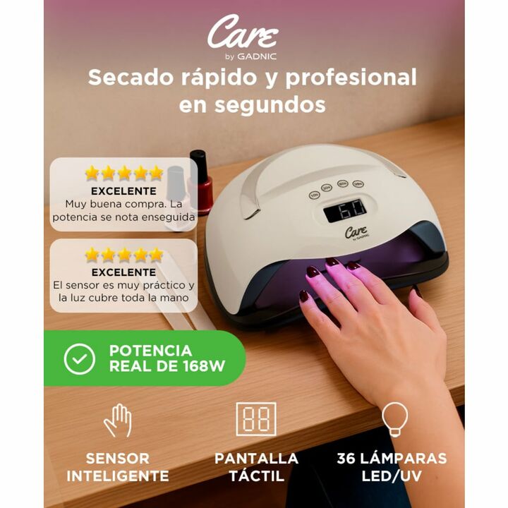 ¡Nueva Cabina UV Gadnic Secadora de Uñas de Gel! Con 36 perlas de luz y una potencia nominal máxima de 168 W, nuestra lámpara de uñas de gel LED UV es más potente que la mayoría. La pantalla digital LED incorporada muestra el tiempo de secado de las uñas. Y debido a la protección contra la temperatu...