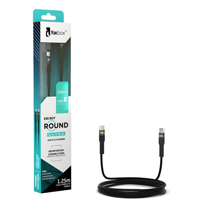 Cable Foxbox Round Ultra 100w Tipo-c A Tipo-c Carga Rápida Características del producto Características principales Marca del cable FoxBox Modelo del cable 7977 Conector de entrada USB Tipo C Conector de salida USB Tipo C Tipo de cable de datos USB Otros Largo del cable 1,25 m