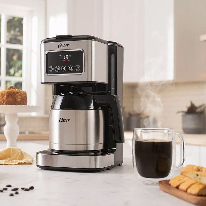 SU JARRA TERMICA TE PERMITE MANTENER EL CAFE CALIENTE HASTA POR 2 HORAS! La cafetera programable de 8 tazas con pantalla tactil de Oster es un complemento elegante para cualquier cocina. Disfruta de la optima funcionalidad para elegir la hora de preparacion y que tipo de cafe deseas, simplemente toc...