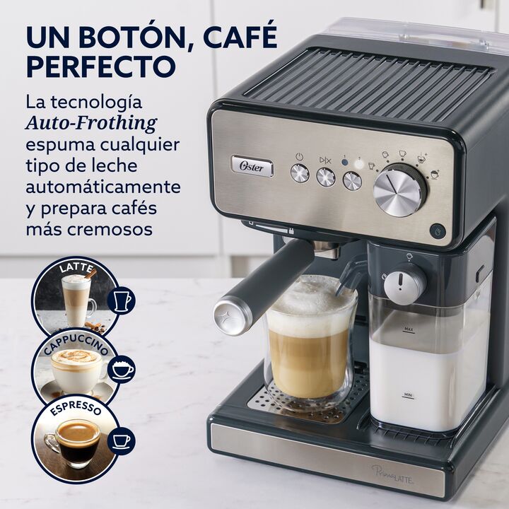 La Cafetera Automática de Espresso Oster PrimaLatte BVSTEM6604SS-054 combina diseño en acero inoxidable con tecnología avanzada para ofrecer espressos, cappuccinos y lattes de manera sencilla y con resultados profesionales. Gracias a su sistema Auto-Frothing, espuma automáticamente cualquier tipo de...