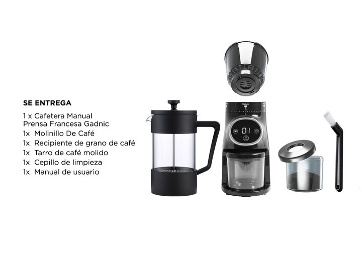 Cafetera Prensa Francesa y Molinillo de Café Profesional. La prensa francesa Gadnic prepara una taza de café premium en solo 5 minutos. Solo necesitas agregar café molido, agua caliente y presionar. No requiere filtros de papel ni cápsulas de plástico, lo que la convierte en una opción ecológica y p...