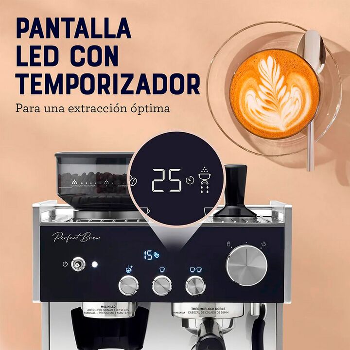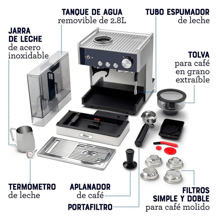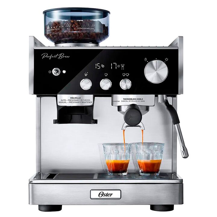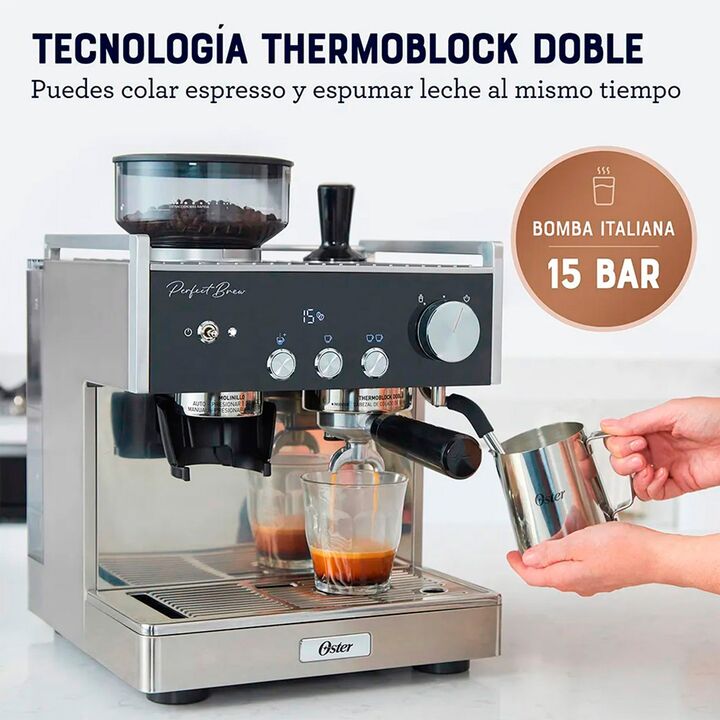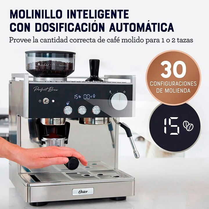 CONVIERTE TU CASA EN LA MEJOR Y MÁS EXQUISITA CAFETERÍA La Cafetera para espresso Oster Perfect Brew Máxima de 15 bares con molino integrado tiene todo lo que necesitas para crear un delicioso café. CAFETERA PARA ESPRESSO OSTER PERFECT BREW MÁXIMA 15 BARES CON MOLINILLO INTEGRADO Está diseñada para ...